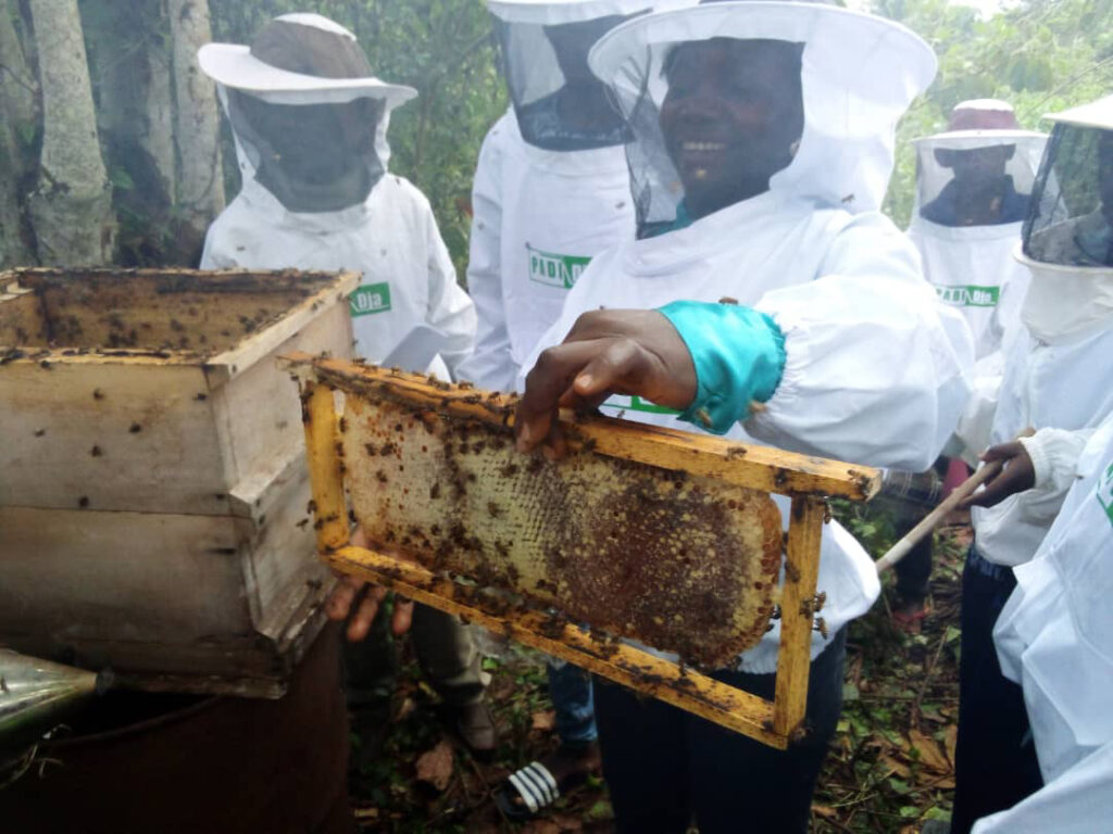 Parallèlement à La formation, le PADI-Dja à mis à la disposition des apiculteurs une série d’équipements tels que : 60 tenues d’apiculteurs et 05 unités de confection de tenues apicoles installées, 05 unités de fabrication de ruches construites, 60 enfumoirs, 05 extracteurs, 05 réfractomètres entre autres. Compte tenu de l’importance de ce projet et de l’engouement des potentiels acheteurs, le PADI-Dja sensibilise les apiculteurs pour qu’ils se regroupent en coopératives. La seconde phase, qui démarre dans quelques semaines, va mettre en place lesdites coopératives, pour permettre aux apiculteurs de tirer davantage de ressources de leurs activités.